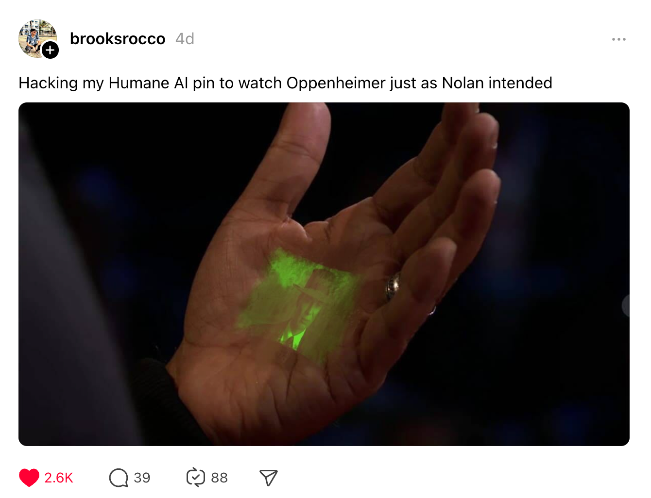 Hacking my Humane AI pin to watch Oppenheimer just as Nolan intended